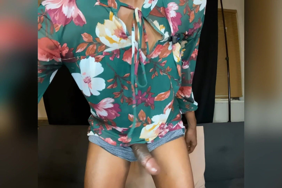 I was super horny after recording a vlog so I started playing with my girl dick and bulge. Pre-cum dripped everywhere!!!