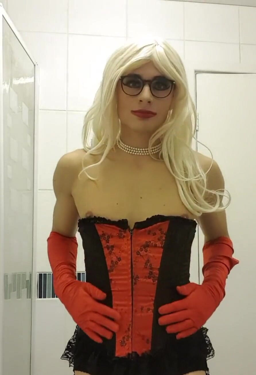 Jessica si cewek hot rambut pirang dengan stoking 6 strap-on lagi asik menggoda cowok sange ini dengan stoking tembus pandang