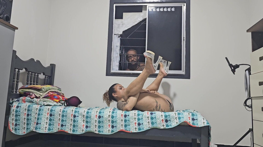 Eliane Furacao: 窓越しに妻が恋人にオナニーをしているのを覗き見ている寝取られ夫は何もしない