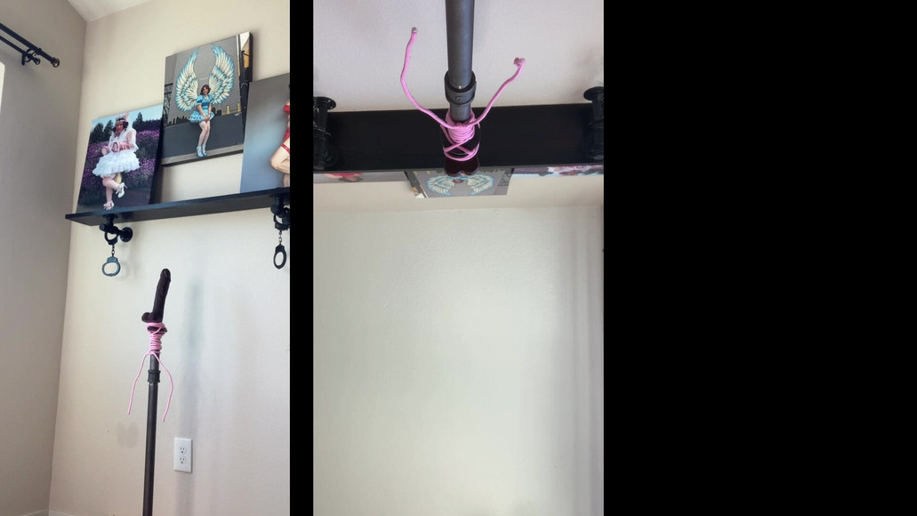 Sissy Candy: Sissy-meid met haar serveerbak die haar dildo-stand berijdt