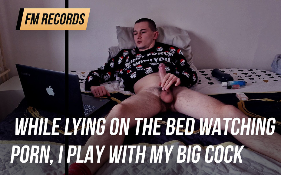 While lying on the bed watching porn, I play with my big 7 inch cock using silicone pussy masturbator what ends with real intense orgasm with cumshot inside it and creampie on me from fake pussy ...