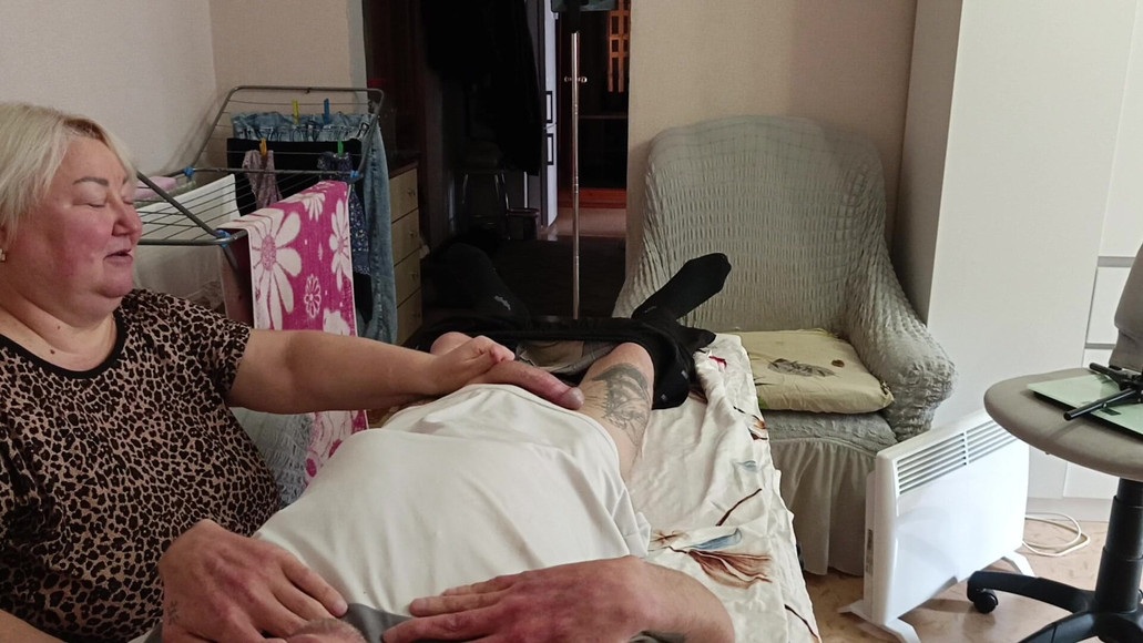 Granne suger och runkar av min kuk på massagebordet och sväljer sperma